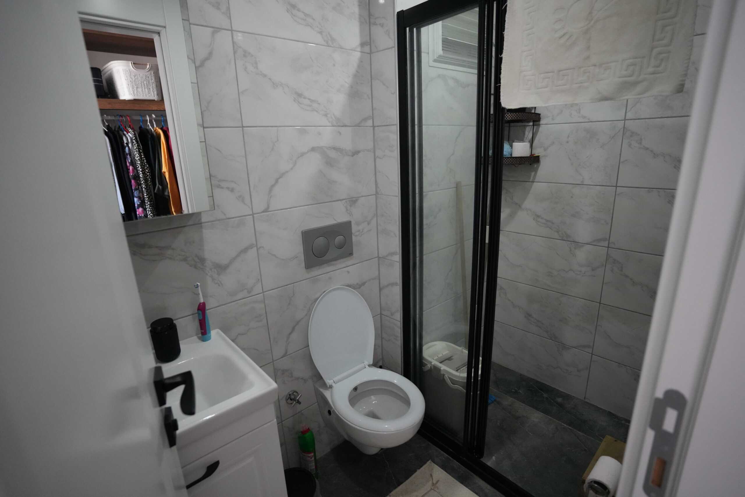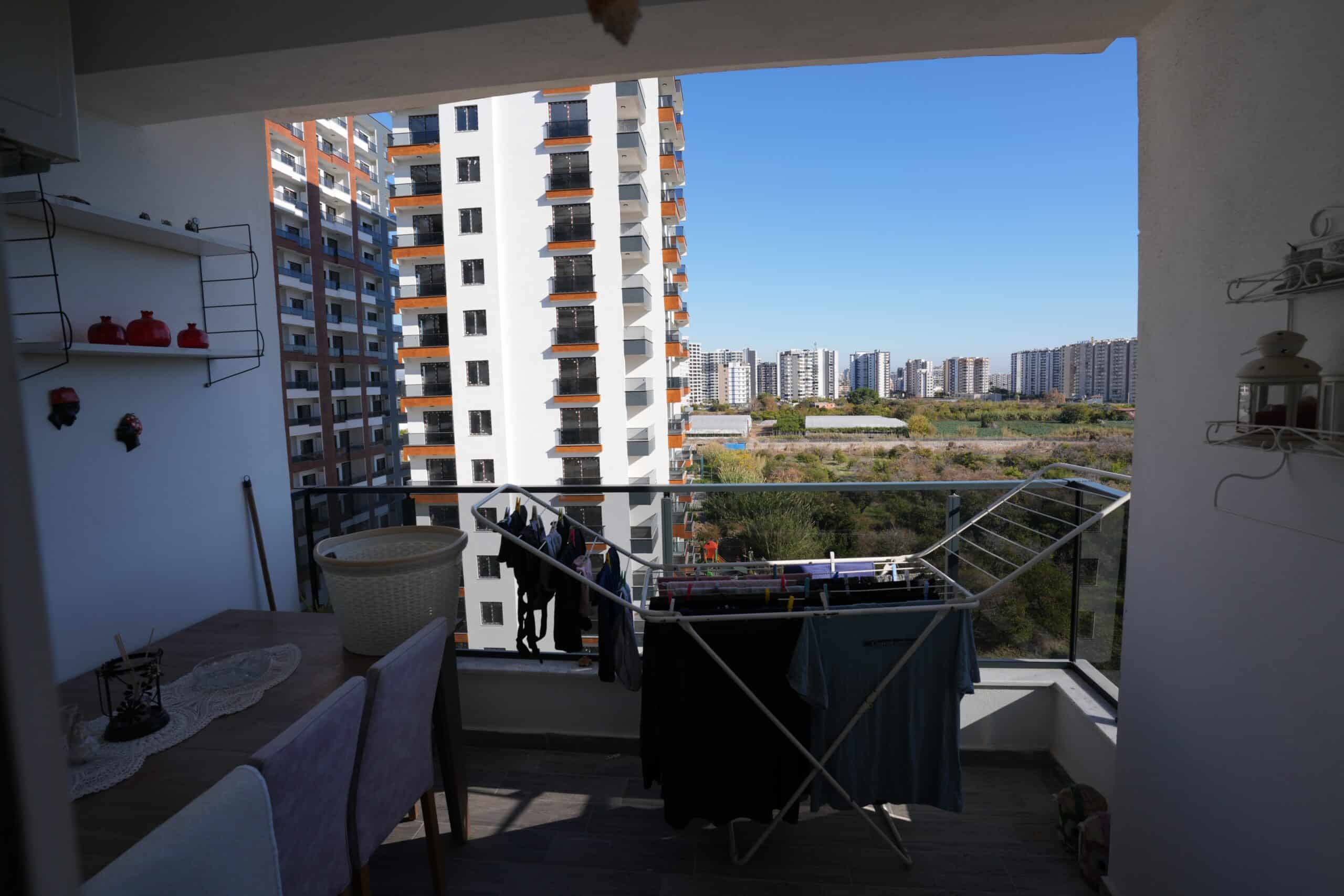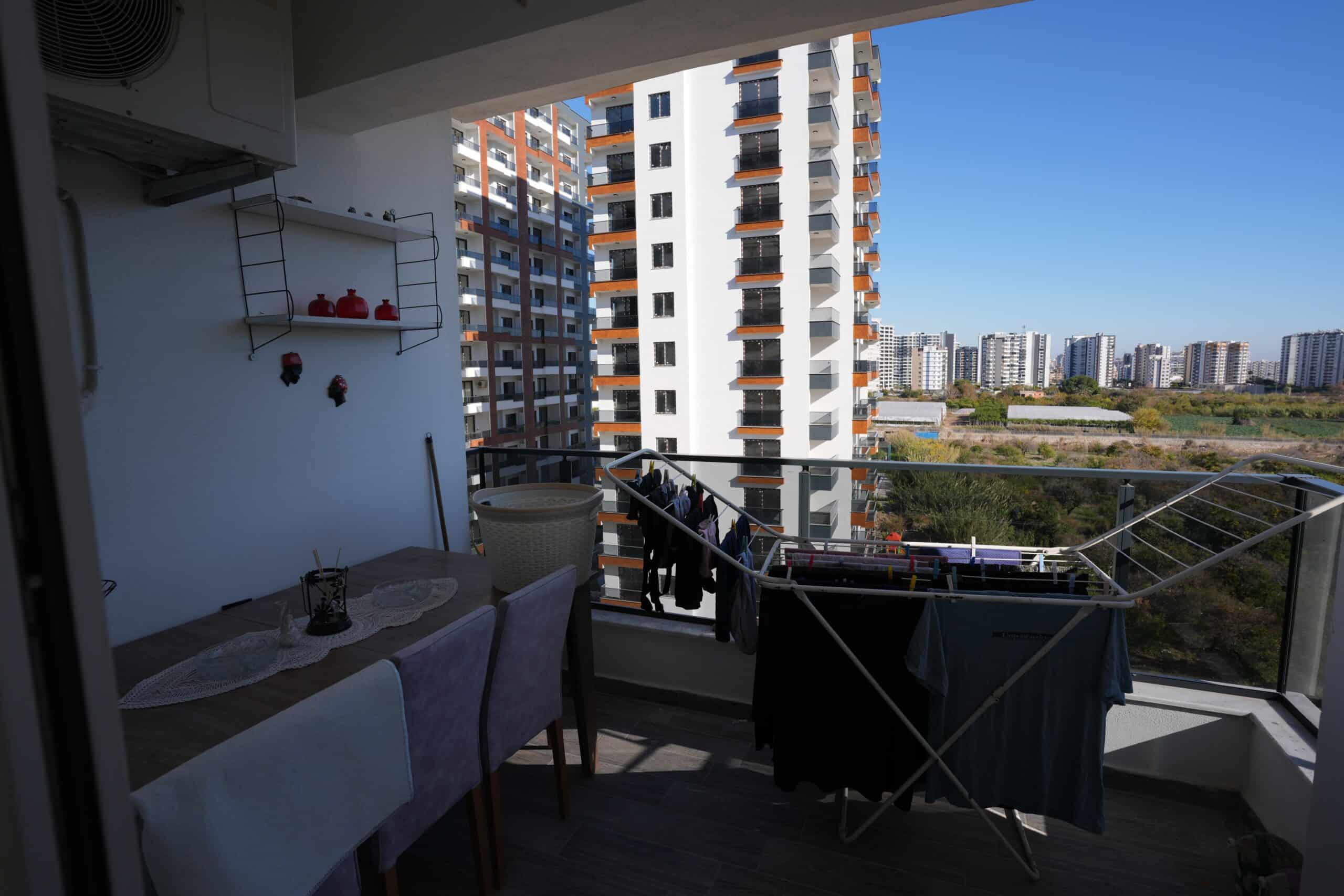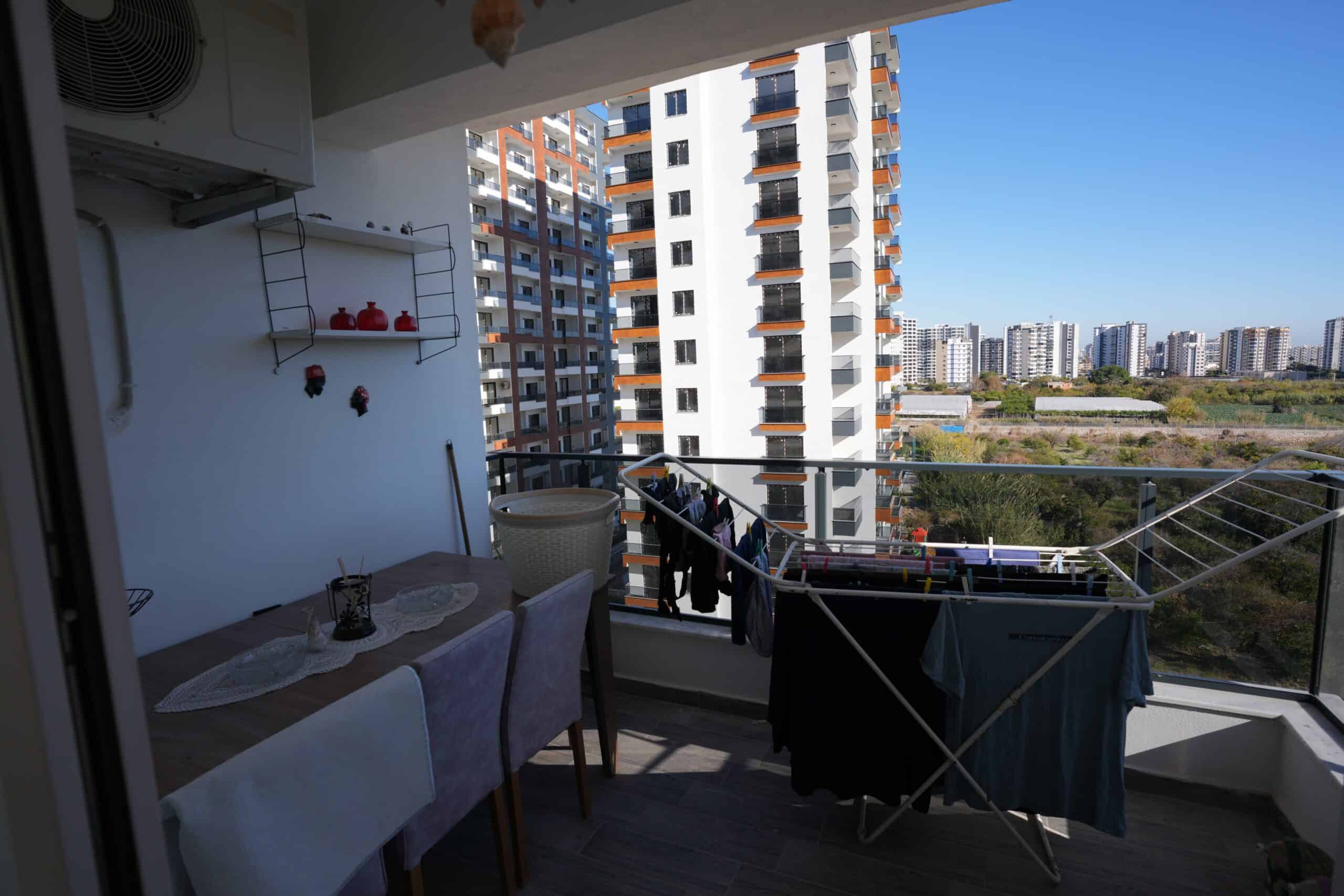 2+1 Corner Apartment for Sale in Mersin Erdemli Tömük Alioğlu Lavinya 2 Complex, SOUTHEAST FACING. EXCELLENT AIR CIRCULATION. THE APARTMENT IS LUXURIOUS. The apartment includes a cloakroom, 2 spacious balconies, 2 shower cabins, 2 Western-style toilets, an en-suite bathroom, a dressing room, and mosquito nets on the windows.