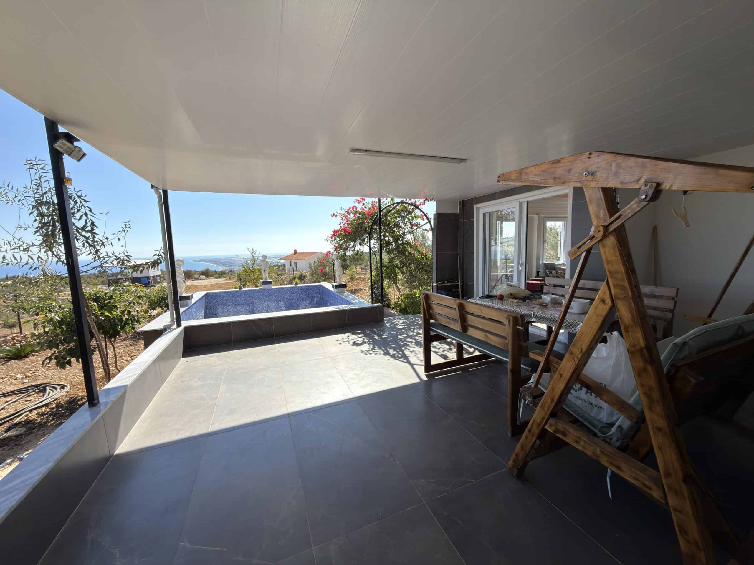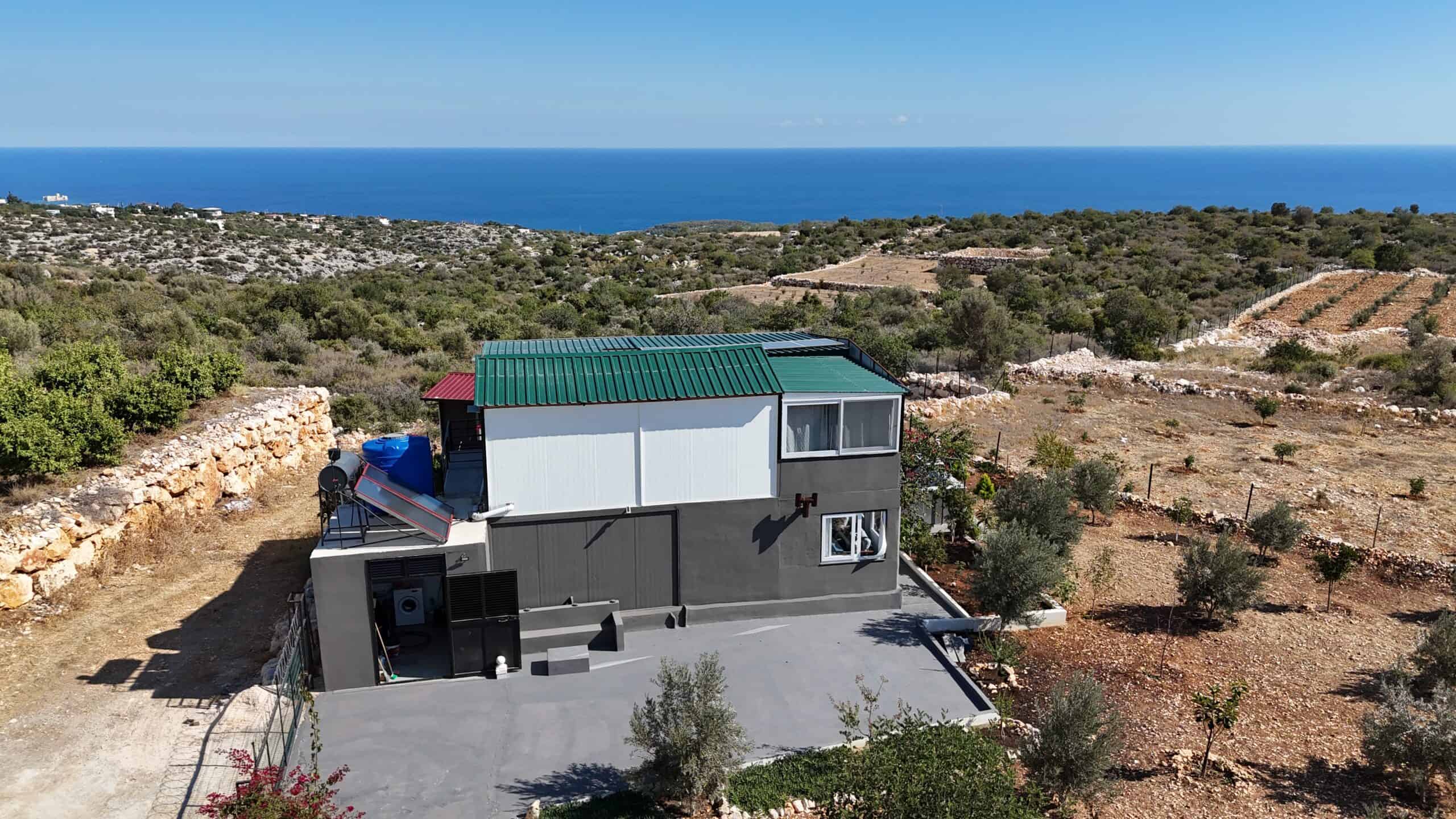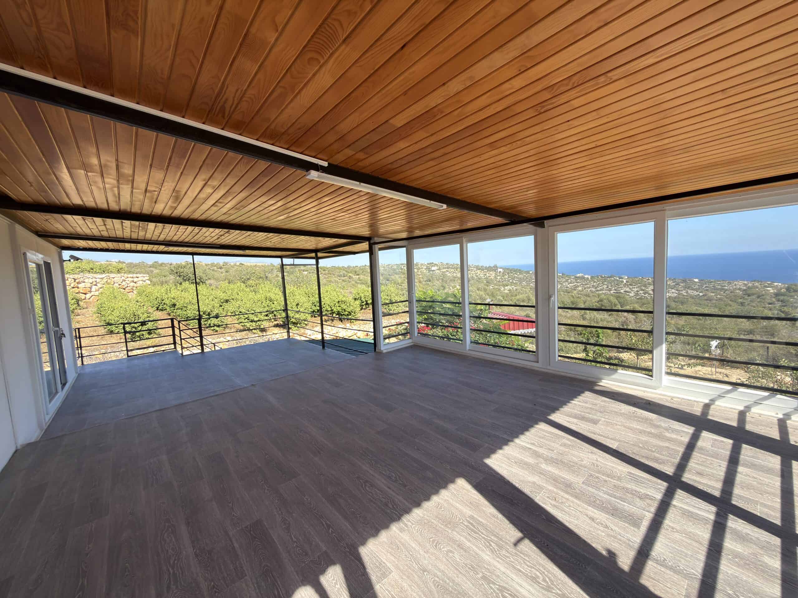 Silifke Narlıkuyu Sea View Detached House for Sale consists of 2 floors. The lower floor and the foundation are reinforced concrete, and the upper floor consists of wood.