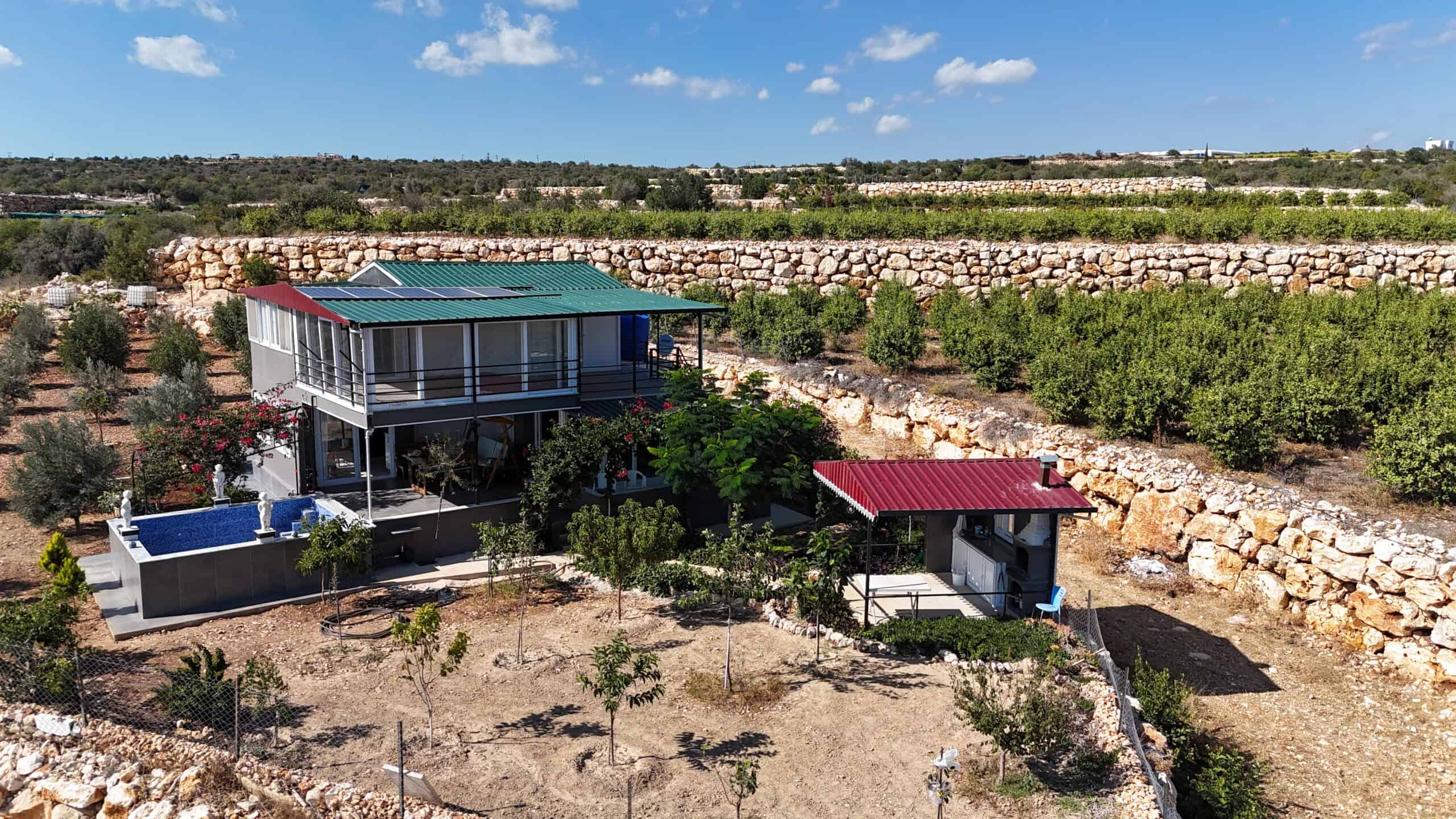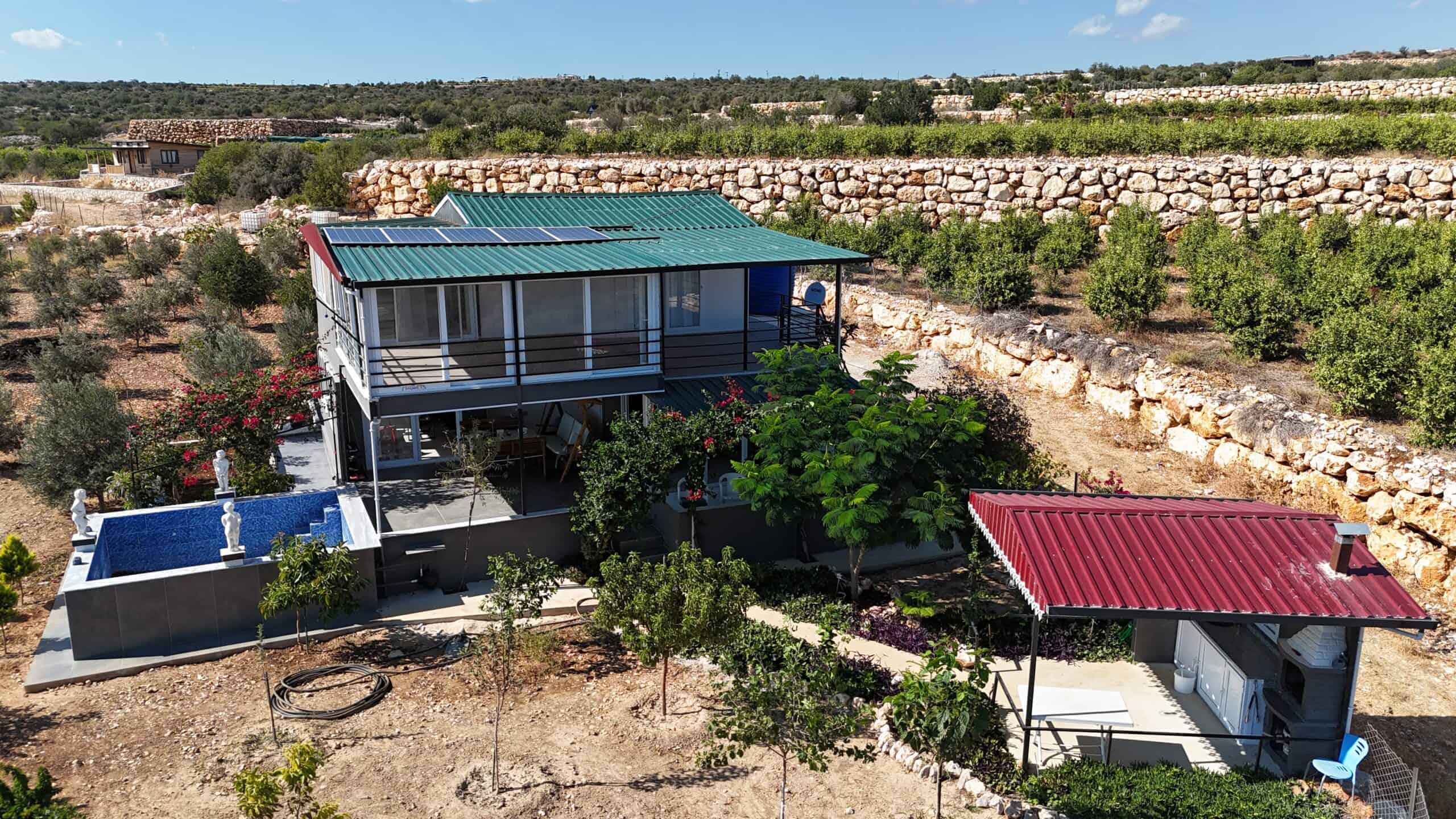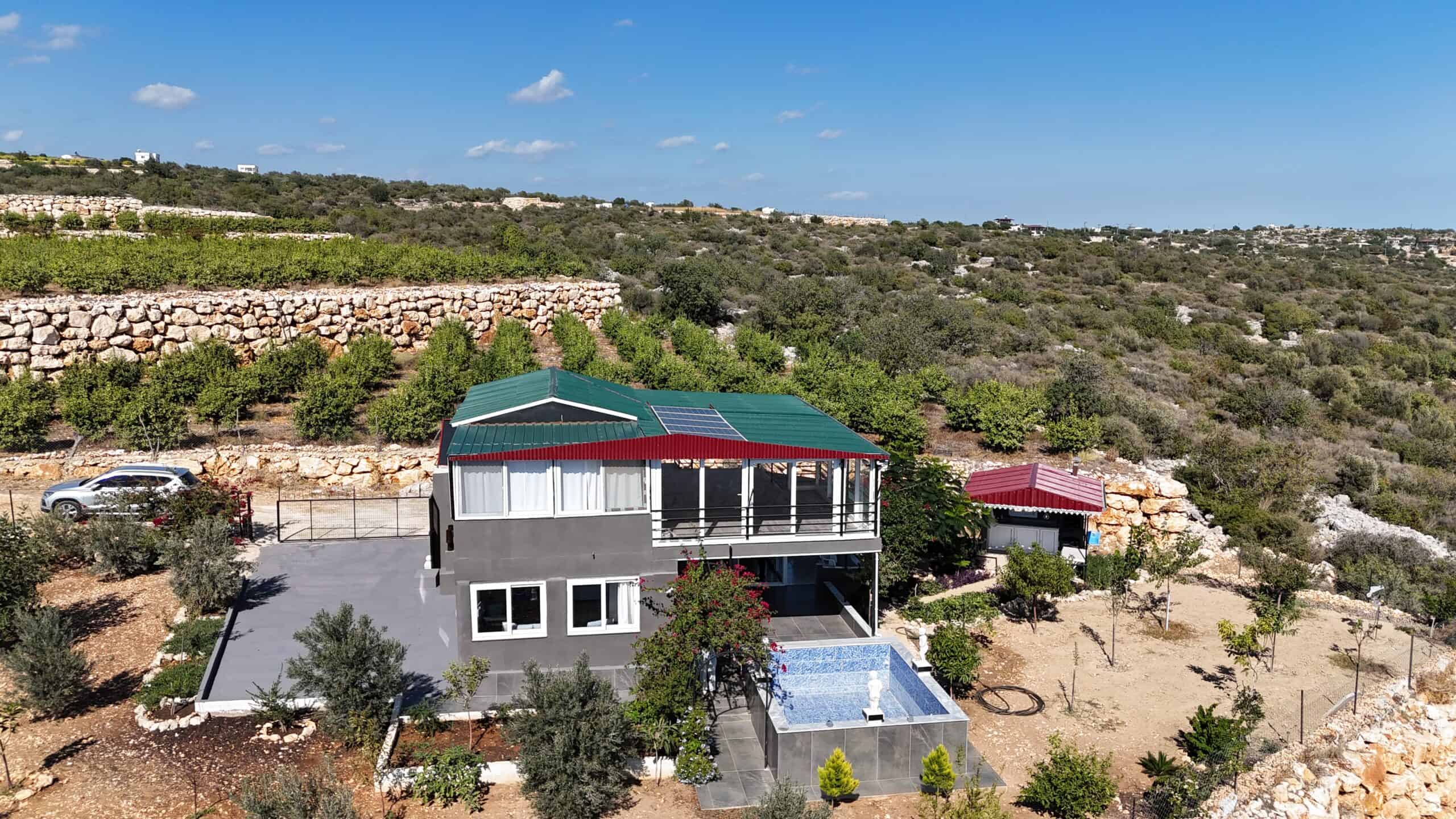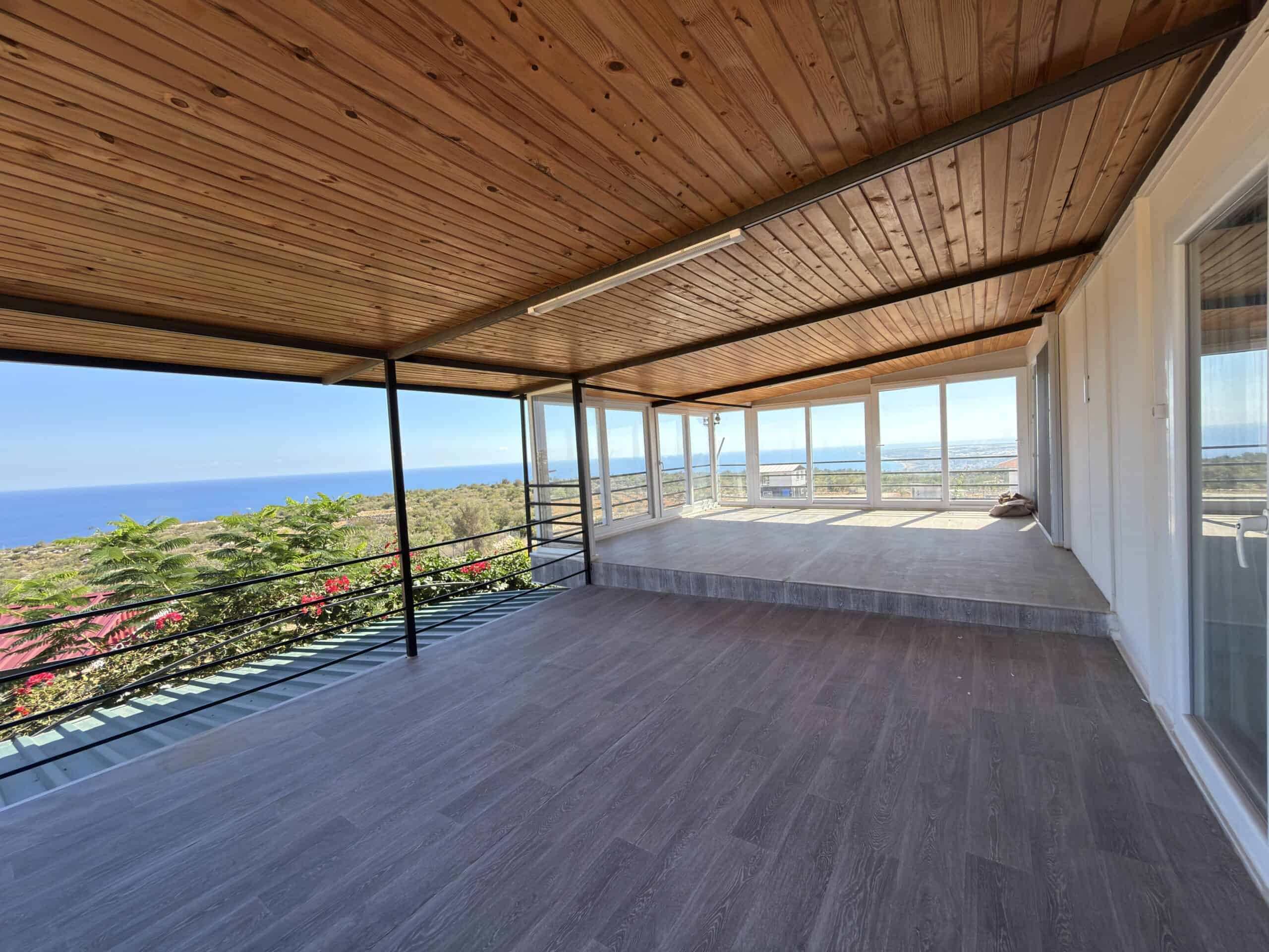 Silifke Narlıkuyu Sea View Detached House for Sale consists of 2 floors. The lower floor and the foundation are reinforced concrete, and the upper floor consists of wood.