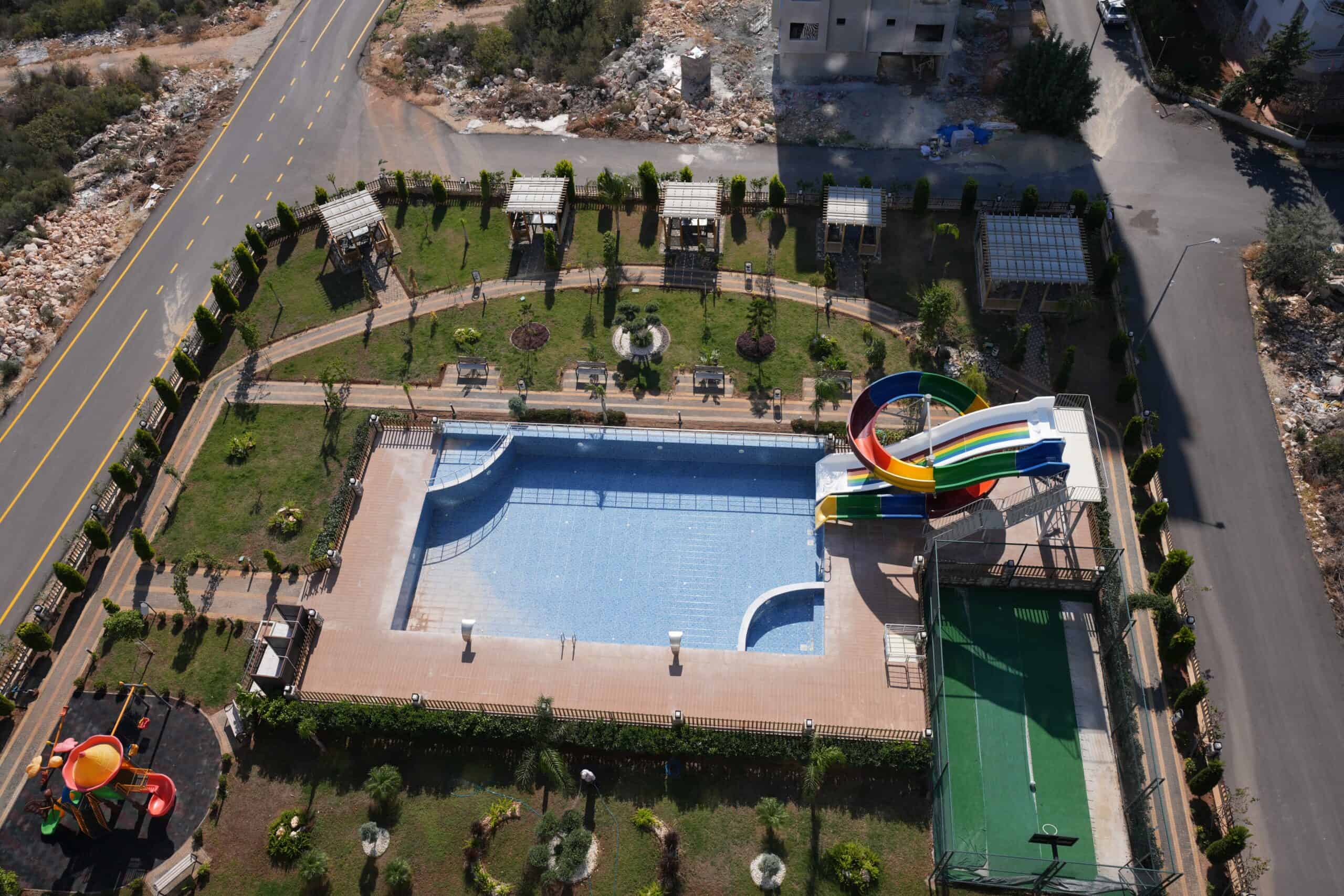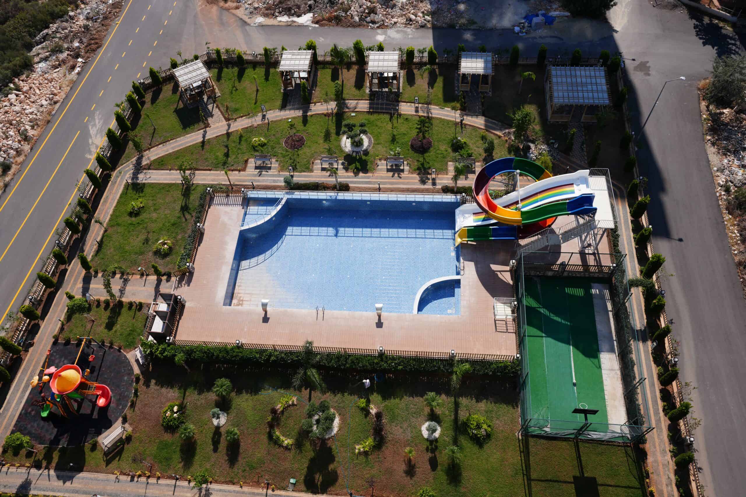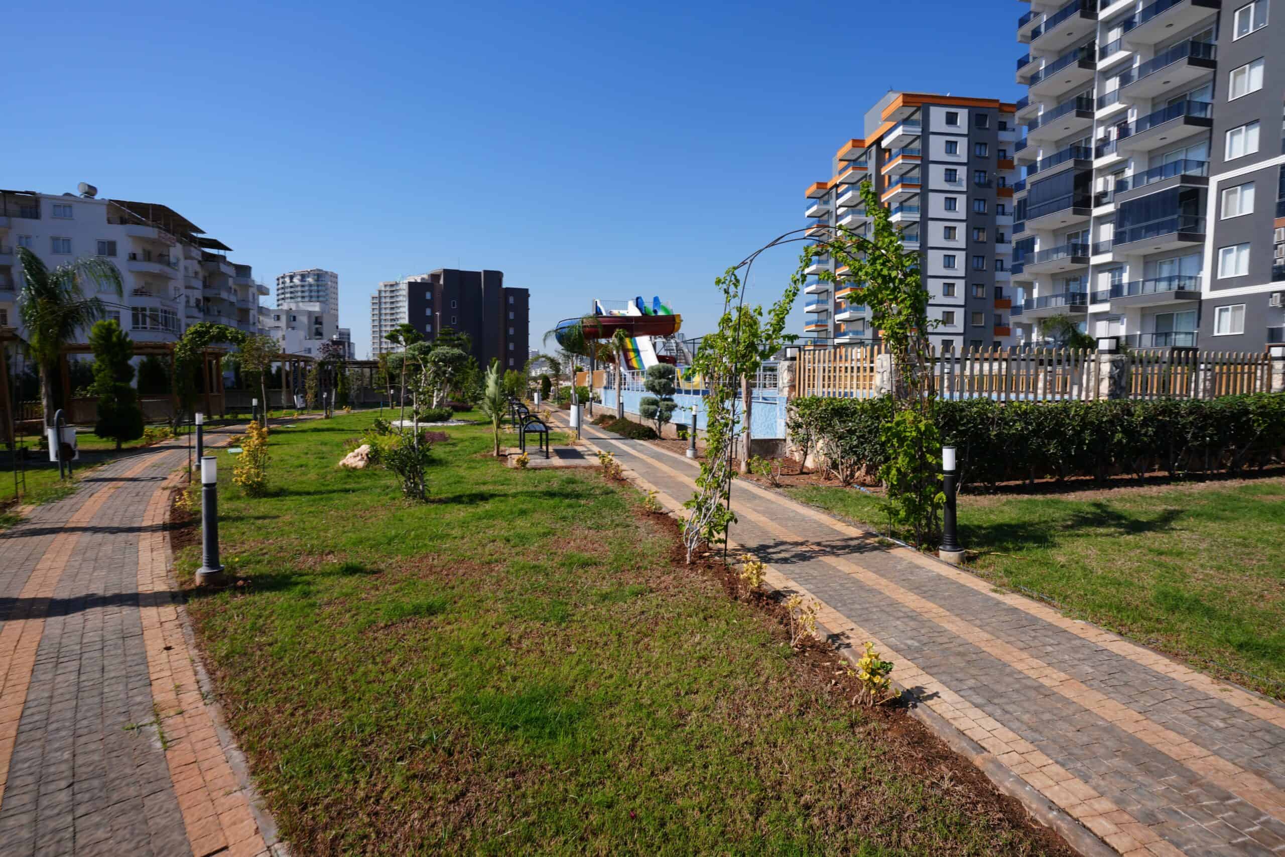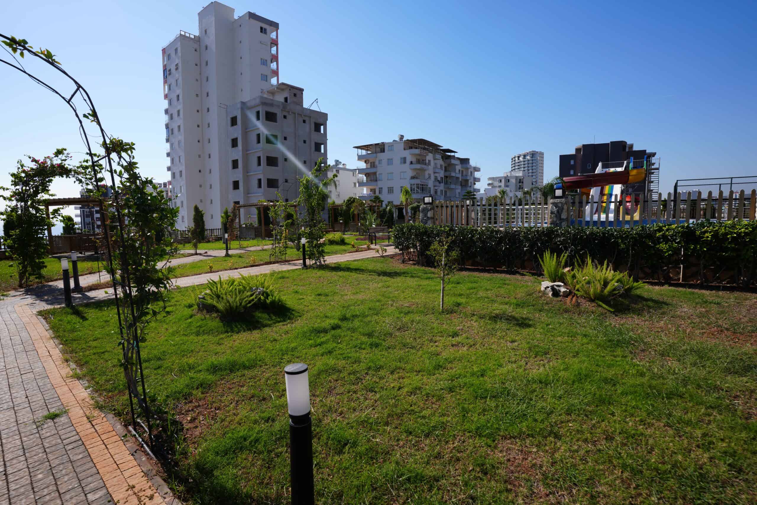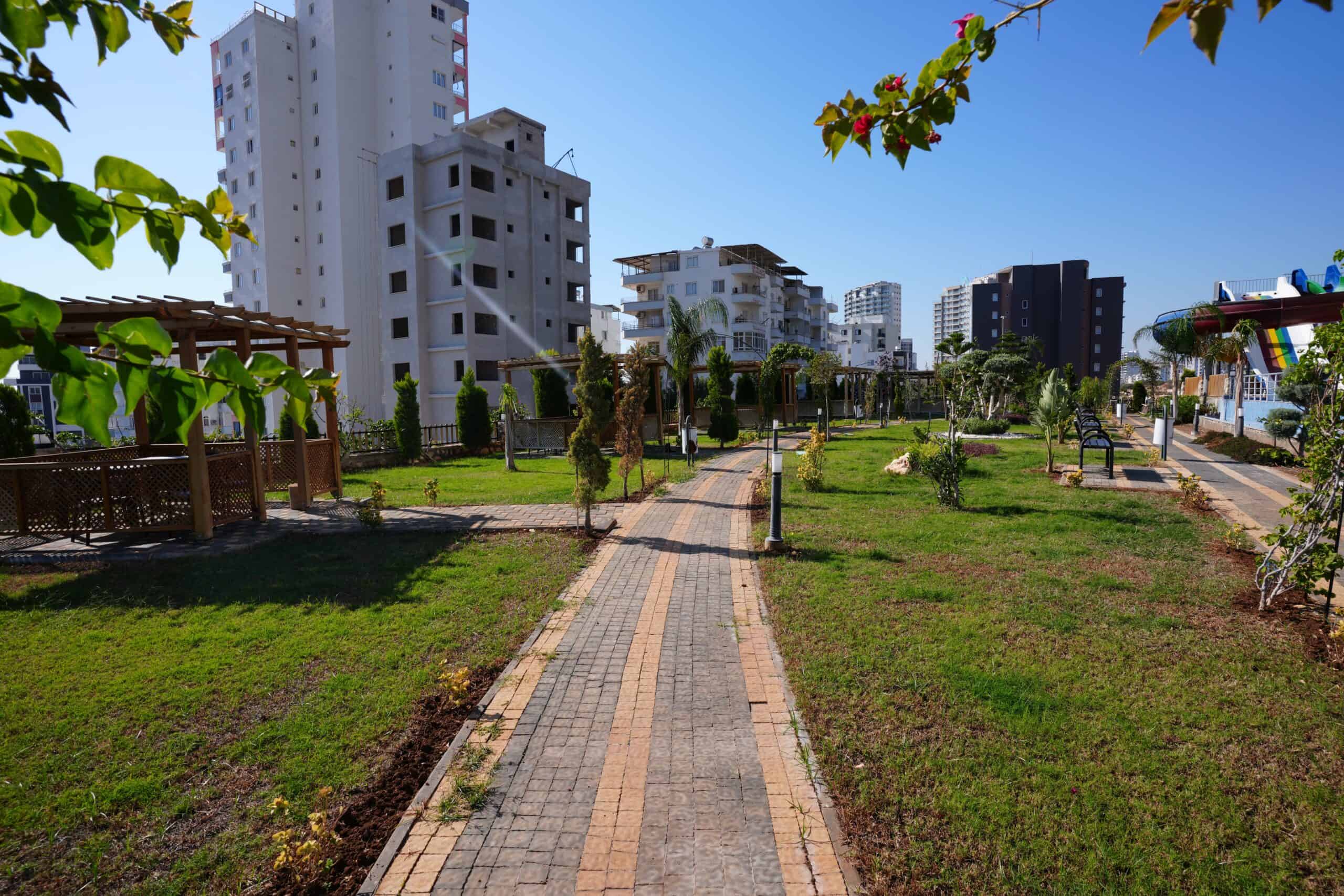 BAHÇE DİZAYNI OLDUKÇA BAKIMLIDIR. AQUAPARK, GENİŞ ÇİM PEYZAJ ALANI, AÇIK YÜZME HAVUZU, ÇOCUK YÜZME HAVUZU VE OYUN ALANI, AQUAPARK, KAMELYA, BARBEKÜ ALANI, ARAÇLAR İÇİN OTOPARK, ASANSÖR, JENERATÖR BULUNMAKTADIR.
