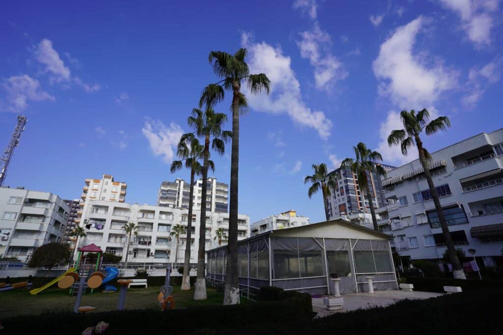 Yunus Site ligt slechts 300 meter van de zee en biedt modern en ontspannen wonen Het heeft een buitenzwembad sociale voorzieningen en een kinderspeelplaats Open ruimtes laten bewoners van de natuur en buitenactiviteiten genieten Het is ideaal voor gezinnen en voor wie een rustig en sociaal leven wil
